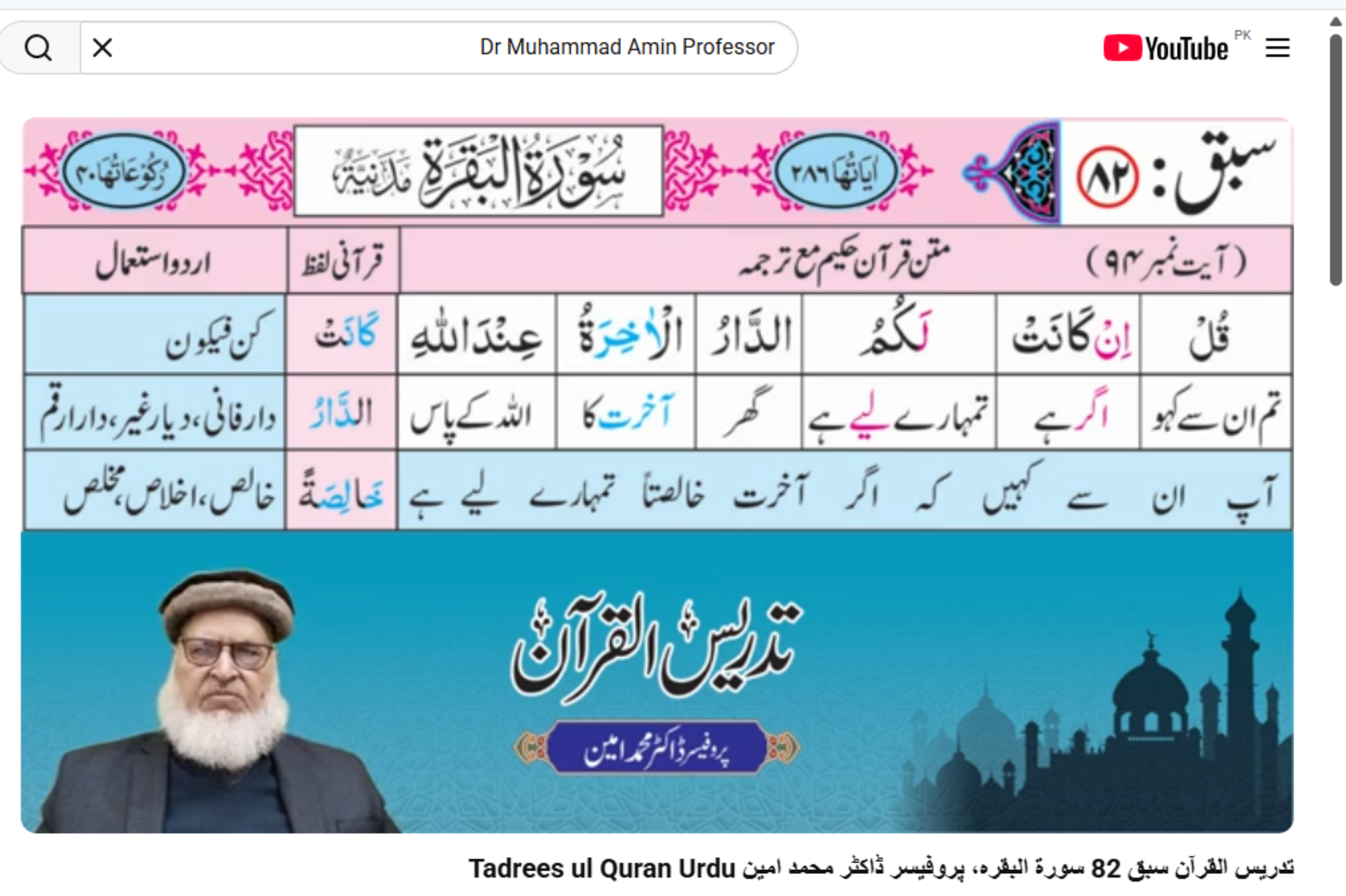 Lessons of Tadrees ul Quran and summaries of Quranic chapters.